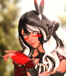 A raided caravan laid on its side on a narrow dirt road in the outer borders of the Azim Steppe. Goods were ransacked, food was taken, and leftovers were left to rot in the sun. Shards of broken pottery and papers were scattered about. Nothing of value was left. One wheel slowly turned in the wind letting out an unsettling squeak. The horses broke from their harnesses to graze in the blood stained grass. The trader that was manning the caravan was sprawled out on the dirt, cold and grey, with his throat sliced open. Whoever committed this crime was nowhere to be seen. That was the downside of this place. One was vulnerable to the many Xaela tribes that roamed this land, unaware of what they could be capable of. Among the scattered goods that remained was a worn, tattered book that soon fell in the hands of a young Xaela woman with her face painted in red.Seven years passed since Sa'ran set foot on Eorzean soil, and in those seven years she experienced great endeavors from successful adventures to gaining friendships to the feeling of loss and total turmoil that tore her world asunder. A fierce fighter in her own right and a well-practiced Red Mage, Sa’ran has begun to feel as though she’s hit a wall. Much like Eorzea, she too stands now at the very precipice of change. Journeys far and wide will bring along new allies in addition to the possibilities of other secrets that might dwell within the tallest mountains to the deepest oceans. Sa'ran takes that first step once again to lead this newfound company forward from the ashes of the past.